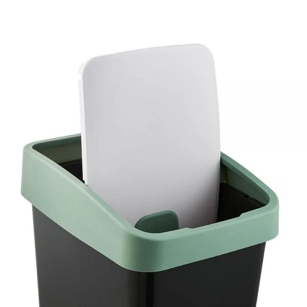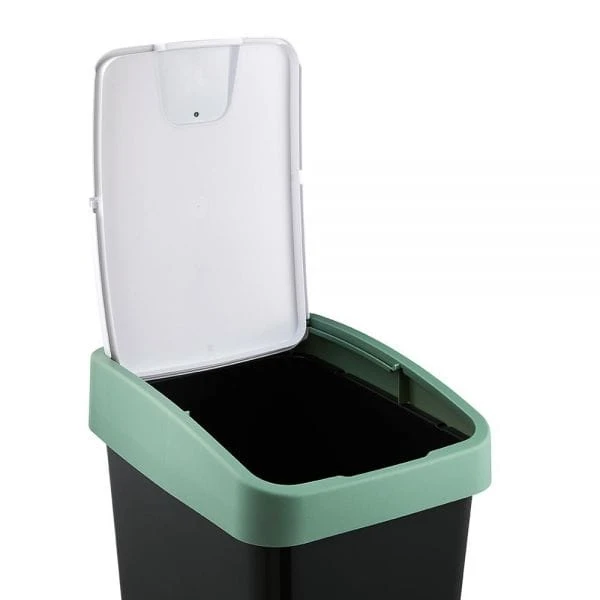 Son couvercle des plus pratiques présente deux fonctions, on peut le soulever ou le faire osciller et il est amovible pour mettre ou enlever facilement le sac poubelle.