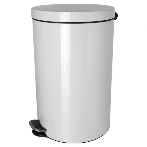 La poubelle à pédale certifiée Silver Ion est fabriquée en acier peint par poudrage et est disponible en noir et blanc.