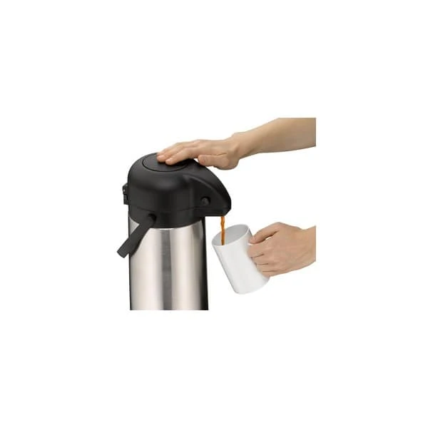 Thermos à pompe TOPTHERM 2,5 litres, corps en acier inoxydable sous-vide, socle, couvercle et poignée en plastique de haute qualité.