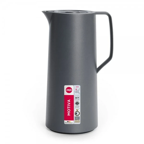Pichet isotherme Motiva de la marque Emsa, capacité 1 litre, bouchon à vis ergonomique, fermeture à pression rapide (quick-press).
