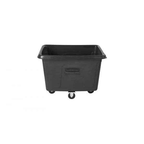 Le chariot cubique noir Rubbermaid 4614 de 0,4 m3 est conçu pour collecter le linge et les déchets. Sa capacité de charge est de 227 kg.