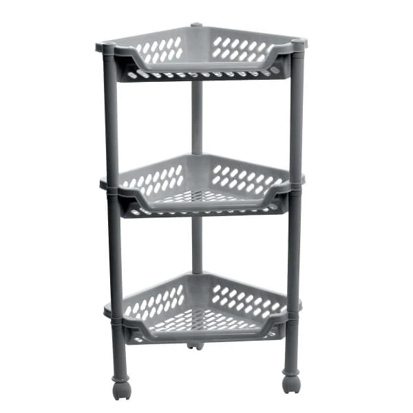 Chariot de forme triangulaire qui s’intègre parfaitement dans le coin de la salle de bain ou de la chambre. Les paniers à paroi ouverte assurent une meilleure ventilation et permettent à l’eau de s’écouler lorsqu’ils sont utilisés dans des zones humides, par exemple la salle de bain.